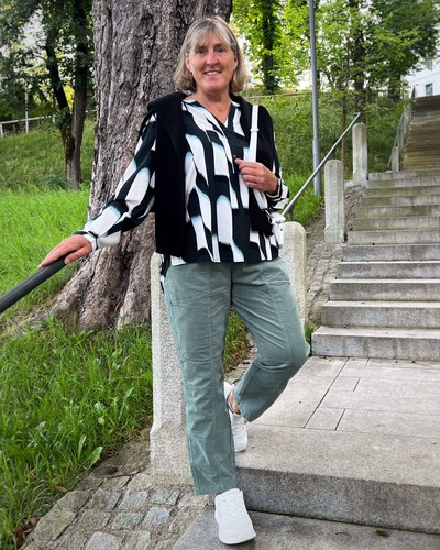 kombinieren wir mit einer lässig langen Bluse von Street One.