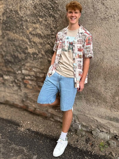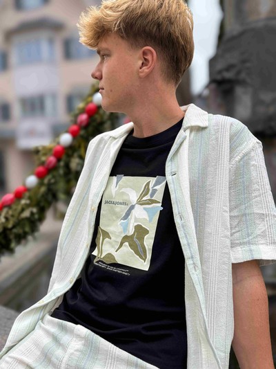 Leinenhose und Backprint Shirt.