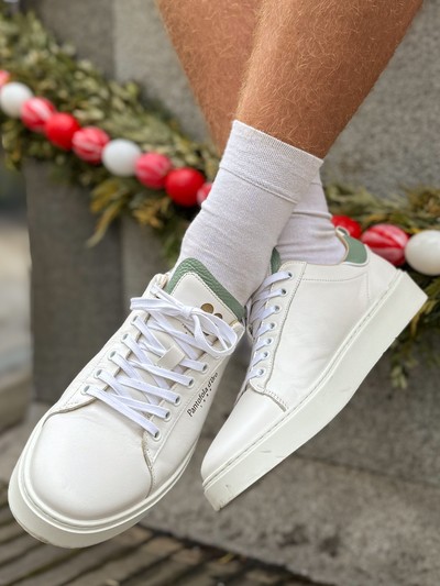 mit farblich abgestimmten Sneakers.